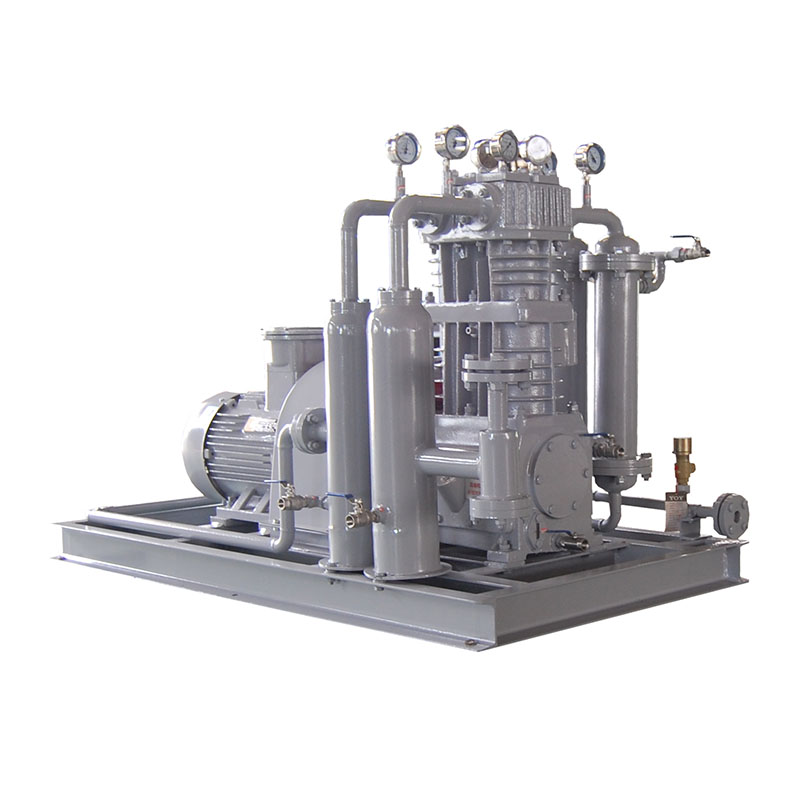 乙烯壓縮機(jī)壓縮機(jī)是我公司新型產(chǎn)品,它集壓縮機(jī)、氣液分離器、安全閥冷卻器、電動(dòng)機(jī)等為一體,成一完整的機(jī)組。具有功能多、體積小、重量輕、功率小、運(yùn)行平穩(wěn)可靠等特點(diǎn),并有良好的安全性能。它為輸送氫氣,可為用戶最大限度地創(chuàng)造經(jīng)濟(jì)效益。由于采用獨(dú)特的無(wú)油潤(rùn)滑設(shè)計(jì),氣缸內(nèi)無(wú)需用油潤(rùn)滑,因而不會(huì)對(duì)介質(zhì)造成污染,使被輸送物質(zhì)保持純凈。本機(jī)設(shè)計(jì)成機(jī)組型式,許多管線上的附件都安裝在機(jī)組上,省卻了氣液分離器、穩(wěn)壓罐、安全閥、進(jìn)氣過(guò)濾器等,減小了機(jī)房的面積,減少了操作維護(hù)工作量,節(jié)省了投資。